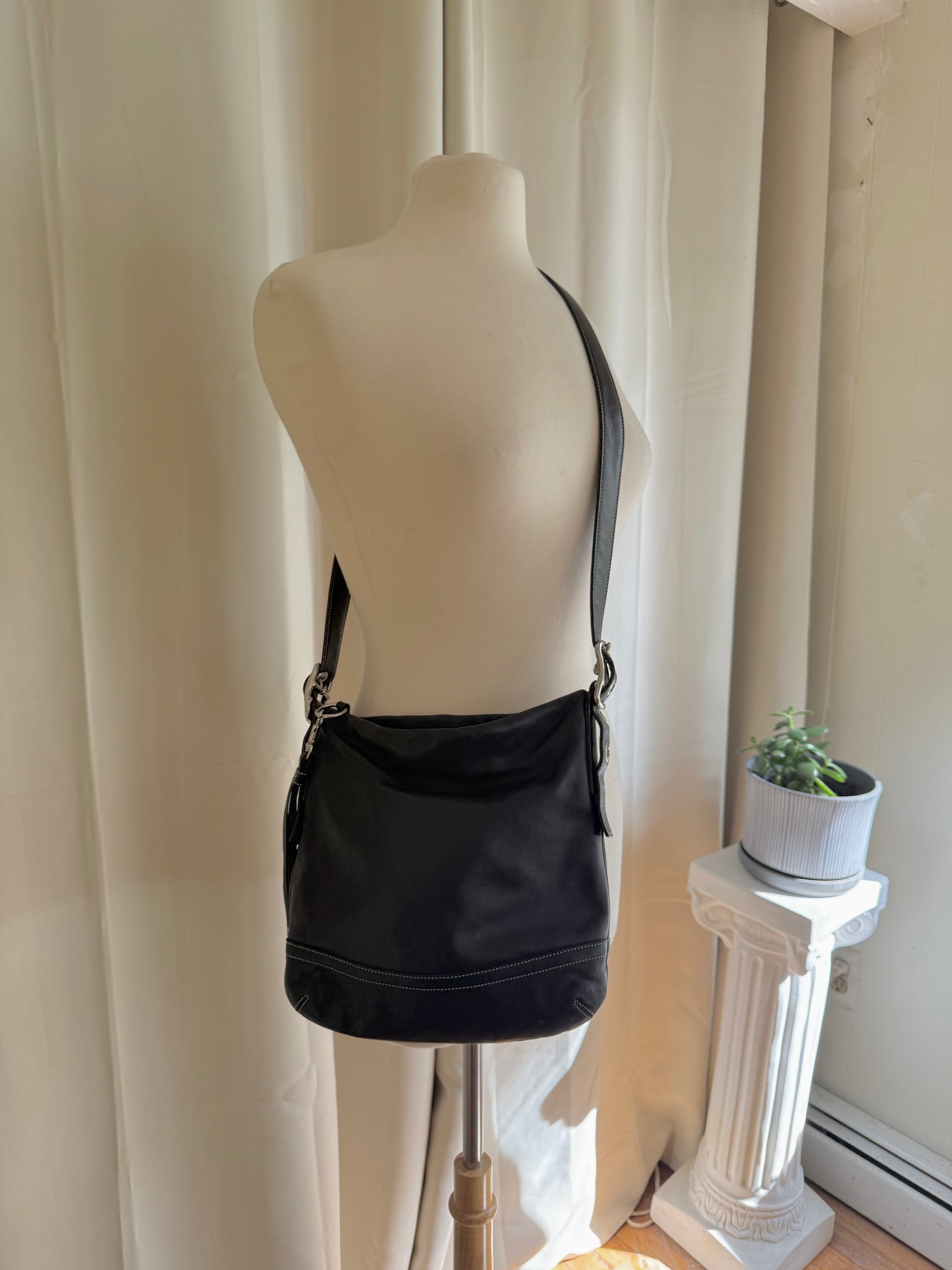 Vintage Coach Black Leather Crossbody Bag With Silver Hardware